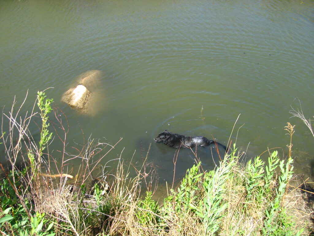 Teewinot was so hot that I pulled over and let him jump in the first water I saw – and in hindsight this pool was pretty nasty. I think this is where he got dirty water into the cactus prick wounds on his back. He would be relegated to surgery and the cone of shame less than two weeks after this.