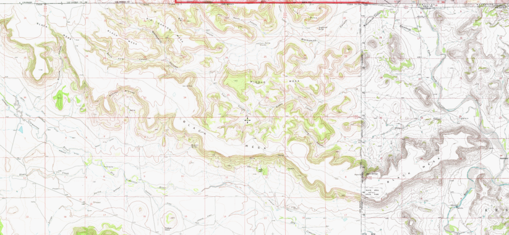Topo map showing how massive Black Mesa is. The OK highpoint is just inside the state line boundary at center right (where the color changes from green to brown)