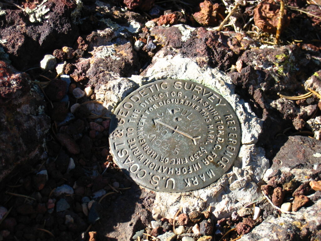 Summit *reference marker.* Note the arrow which points at the reference point. The summit is at 8,182 feet!