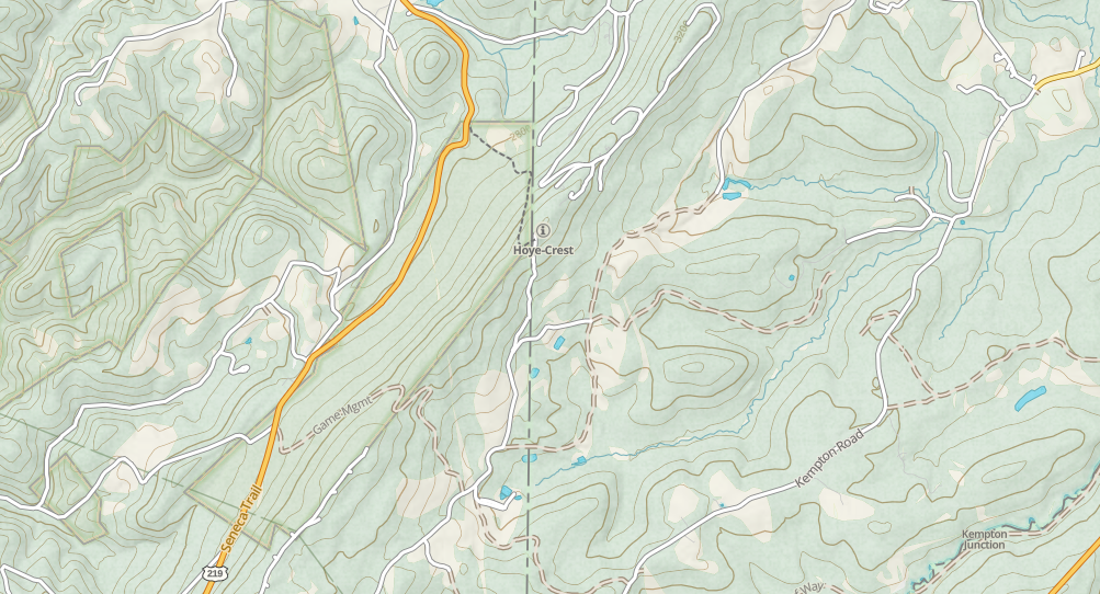 Hoye Crest of Backbone Mountain is just a few steps away from the state line (WV to the left), where Backbone continues to over 3,600 feet to the southwest.