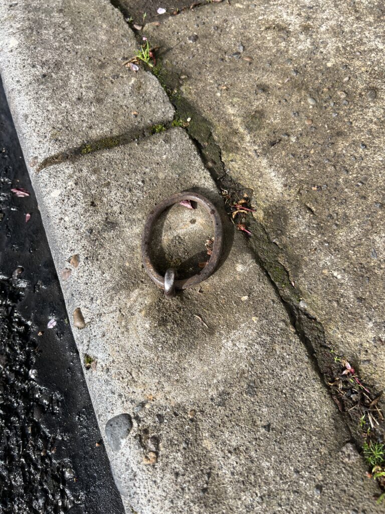 This is a ring used to tie your horse up across the street from the Barley Mill Pub – these are everywhere in Portland and evidence we used to make some really good concrete!