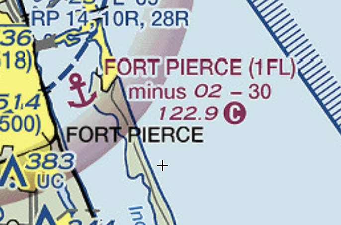Fort Pierce SPB in Florida is listed as “minus 02” aka 2 feet below mean sea level behind a barrier island on the Atlantic coast. The author could find no evidence of this base anywhere on Google Earth. Note the eye is in the middle of the “Indian River.”
